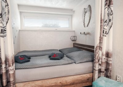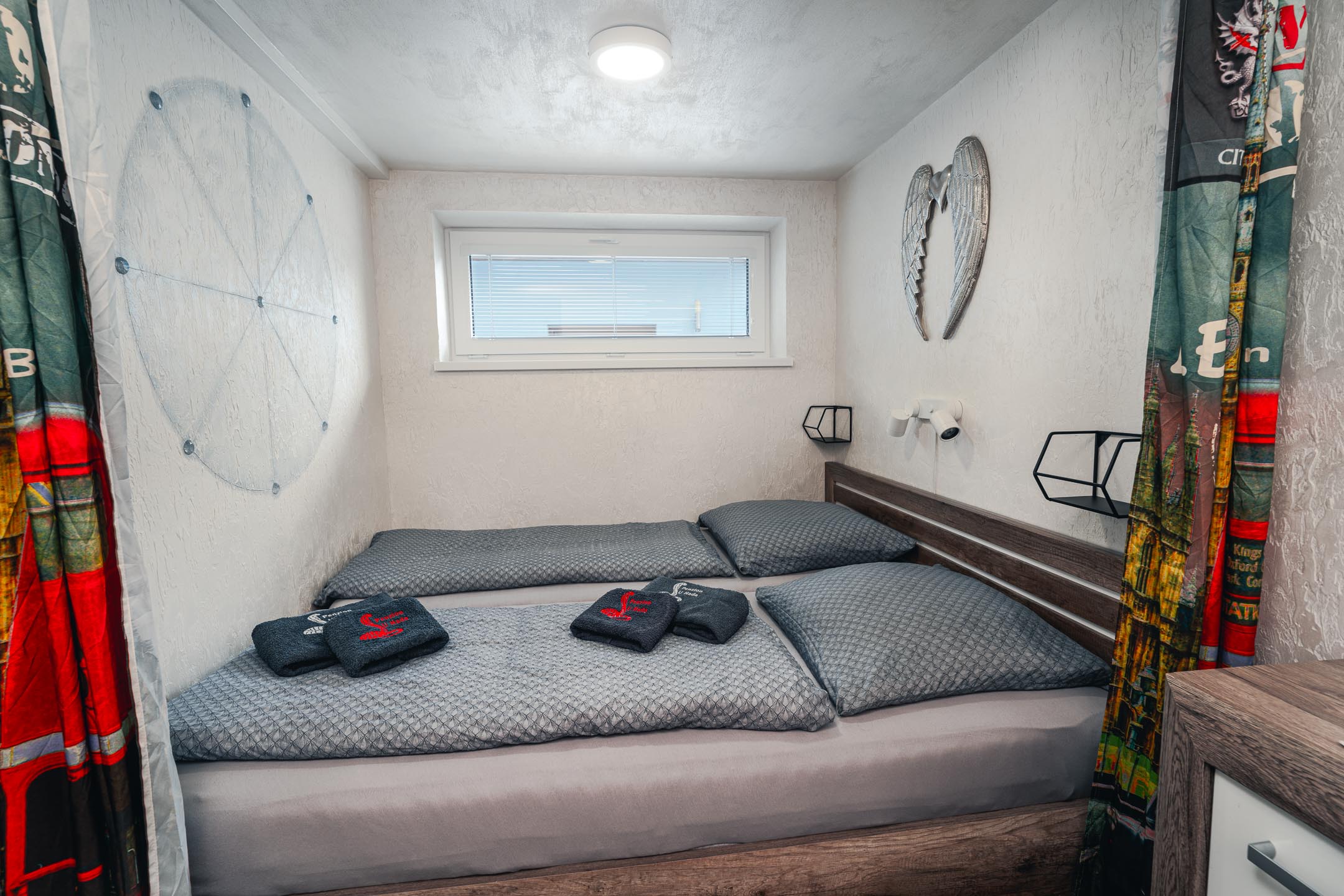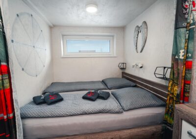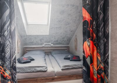 V pokojích jsou manželské postele a další nocležníci ustelou na rozkládací sedačce.